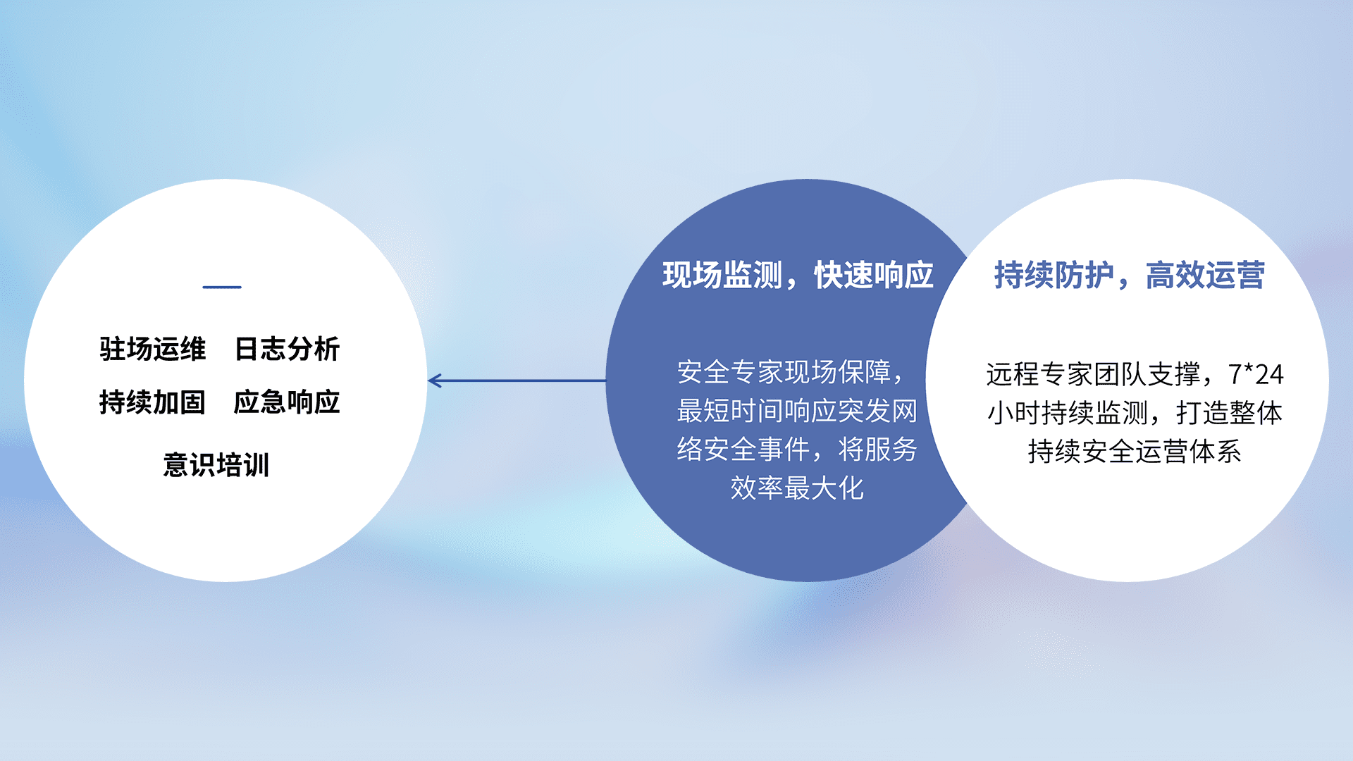 针对客户行业特性,,,提供专属的一站式安全管理服务,,帮助客户全面感知网络空间威胁,,,,通过安全专家的线上、、、、线下防护支持,,,实现风险闭环,,,将安全保障常态化,,,,为客户打造常态化安全运维运营服务。。